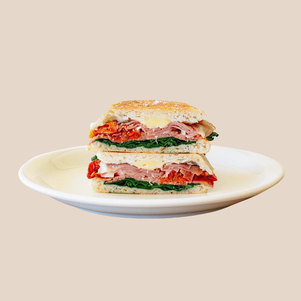 The sandwich to end all sandwiches. Prosciutto, Sopressa, Ham, Bocconcini, Spinach Passata on a Turkish roll