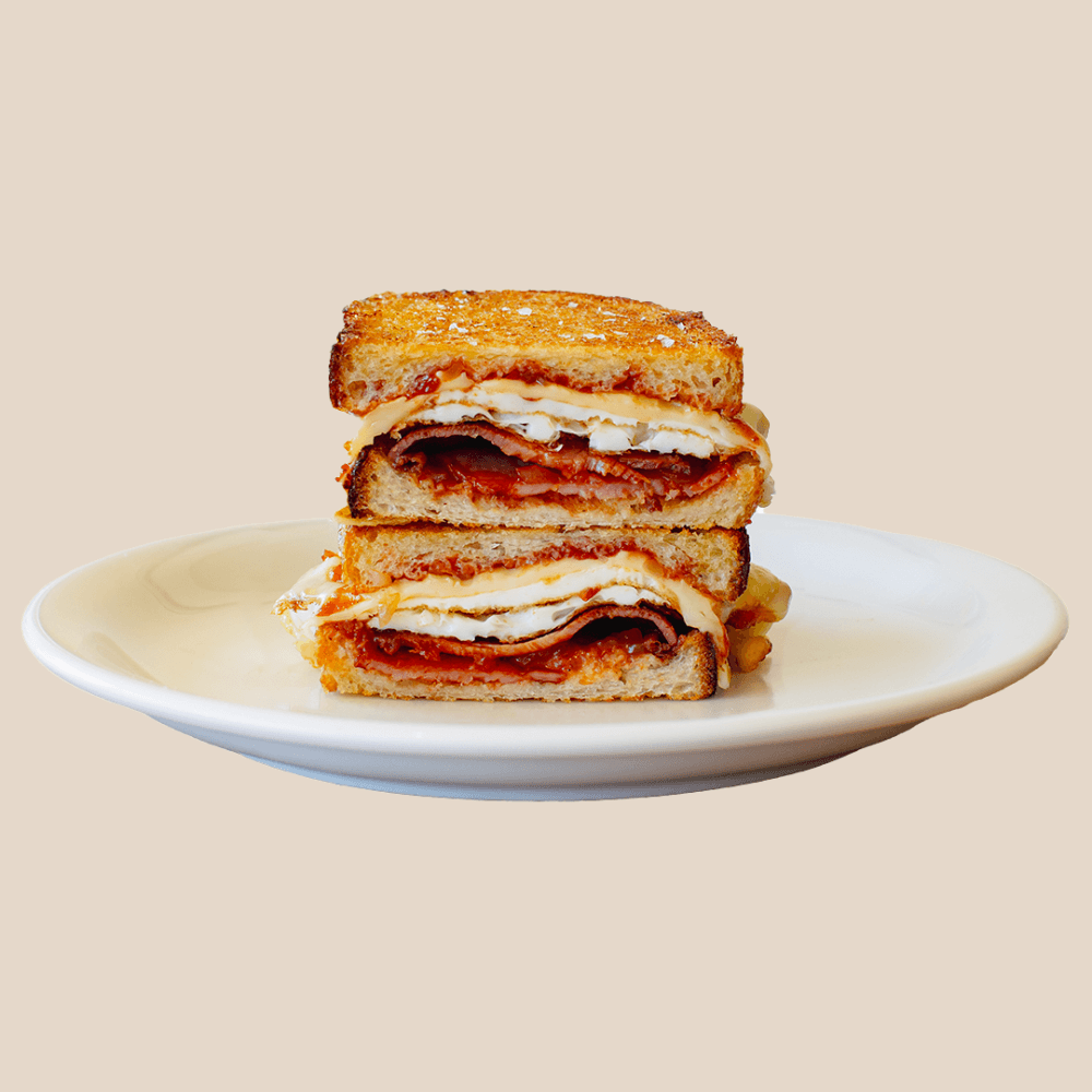 Crispy bacon, egg, Swiss cheese, and rich tomato relish, toasted to perfection on The Sugarmill sourdough. A hearty, golden start to your day!