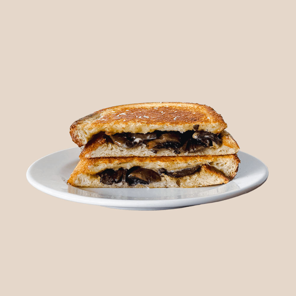 Mushroom medley sautéed in garlic butter with cheese on sourdough