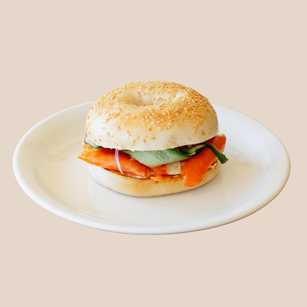 Smoked Salmon, cream cheese and capers on a deliciously chewy bagel