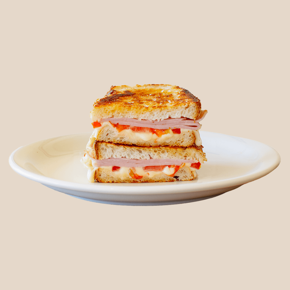 Shaved ham, fresh cut tomato and swiss cheese (availability dependant) toasted in Sourdough
