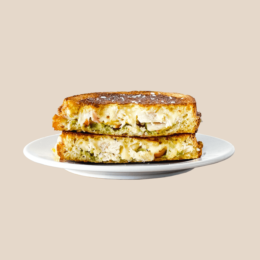 Succulent breast Chicken, Gooey Cheese & Aioli with a hint of Garlic perfectly toasted.